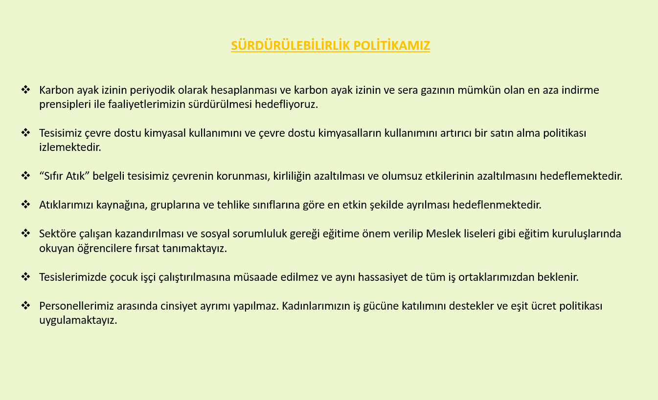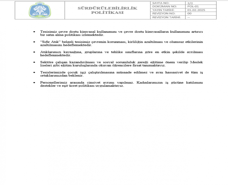 Sürdürülebilirlik Politikası